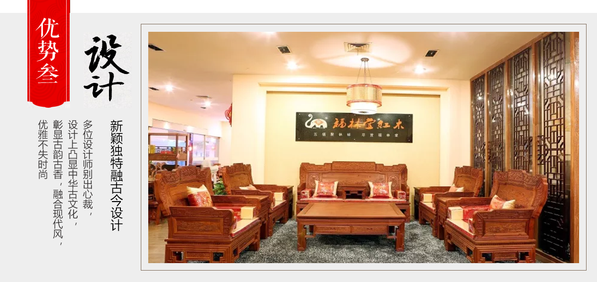 東陽市大聯(lián)福林堂紅木家具廠座落于素有“東方好萊塢”之稱的國家AAAAA級影視旅游基地橫店影視城, 是一家集開發(fā)、設(shè)計(jì)、生產(chǎn)、銷售、服務(wù)為一體的綜合型企業(yè)。本公司匯集一批具有豐富生產(chǎn)經(jīng)驗(yàn)的能工巧匠,具有豐富的紅木家具設(shè)計(jì)生產(chǎn)經(jīng)驗(yàn)。本公司產(chǎn)品主要選用紫檀、花梨、酸枝、雞翅等優(yōu)質(zhì)紅木,并采用純天然蜂蠟飾面。經(jīng)過蒸煮、脫脂、烘干、定型等多道工序嚴(yán)格處理,福林堂紅木始終嚴(yán)格秉承“質(zhì)量第一”、“信譽(yù)至上”的經(jīng)營理念,在繼承傳統(tǒng)工藝的基礎(chǔ)上,不斷創(chuàng)新,大力引進(jìn)先進(jìn)家具設(shè)備、烘干設(shè)備,實(shí)現(xiàn)了現(xiàn)代生產(chǎn)工藝與傳統(tǒng)表現(xiàn)手法的有機(jī)相融。